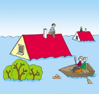 Soon a man in a rowboat came by and the fellow shouted to the man on the roof, “Jump in, I can save you.”